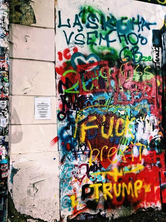 The John Lennon Wall is a tribute to the hero for pacifist youths during the totalitarian era and a representation of free speech. The wall is now covered with political graffiti and Beatles lyrics.