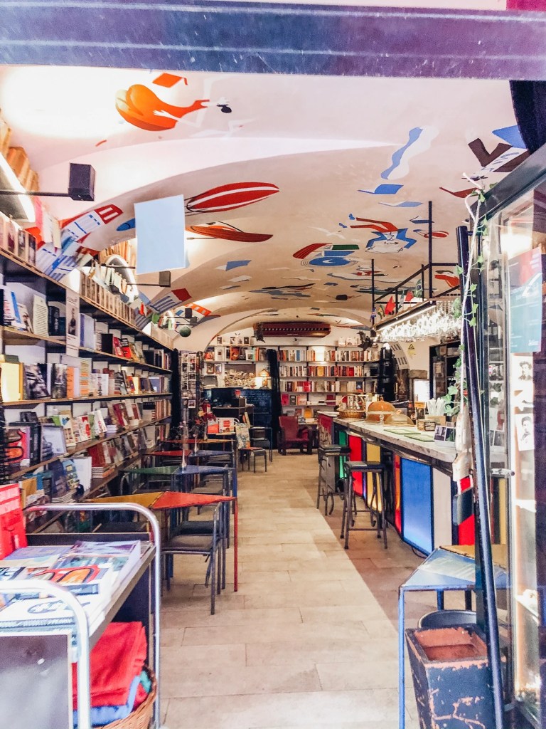 Menina e Moca: a bookstore AND a bar? What two better things to combine? Happy hour 2-10 PM, good drinks, indoor and outdoor seating, plenty of books and quotes on the walls