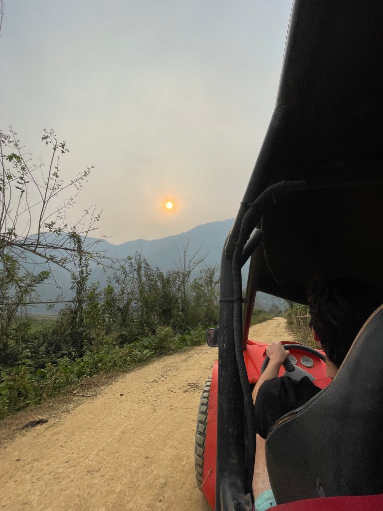Our first morning in Vang Vieng, our alarms went off at 4:30am (appalling hour I know) and we were soon picked up for a bucket list experience–HOT AIR BALLOONING. Laos is one of the cheapest places in the world to ride a hot air balloon, so obviously we took advantage of the opportunity. We went through the company Above Laos, which I definitely recommend. We were provided with pre-flight snacks and coffee, up to 1 hour and 15 minutes in the air depending on weather, post-flight breakfast and champagne, and a certificate! Even though it was burning season, it was still an insanely cool experience worth the early wakeup.